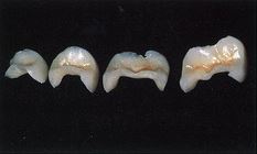 ι αρκετά κατεστραμμένα,με αποτέλεσμα να μην μπορούν να αποκατασταθούν με ένα απλό σφράγισμα,έχουν εν τούτοις αρκετή εναπομείνασα οδοντική ουσία η οποία σε περίπτωση που γίνει μια θήκη για την αποκατάσταση τους θα εξαφανιστεί κι αυτή με το τρόχισμα του δοντιού.